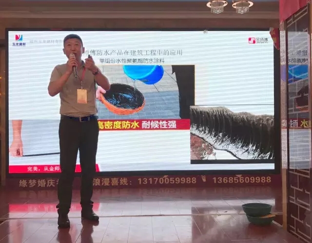 郝总,从每款产品出发,什么产品用在什么地方?怎么用?用的过程中要注意哪些细节等方面讲起。泥瓦工师傅们纷纷表示,这样的会议,涨知识!的确,大而空的话谁都会说,做防水,讲究的是真材实料!
